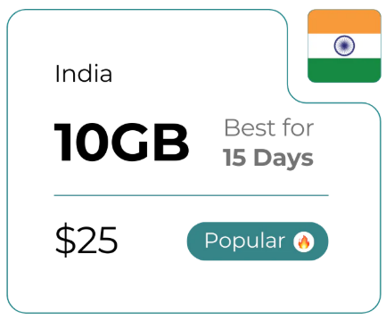 -   Связь: -   eSIM для Индии: пакеты данных от 1 ГБ до 20 ГБ, действительные в течение 30 дней.