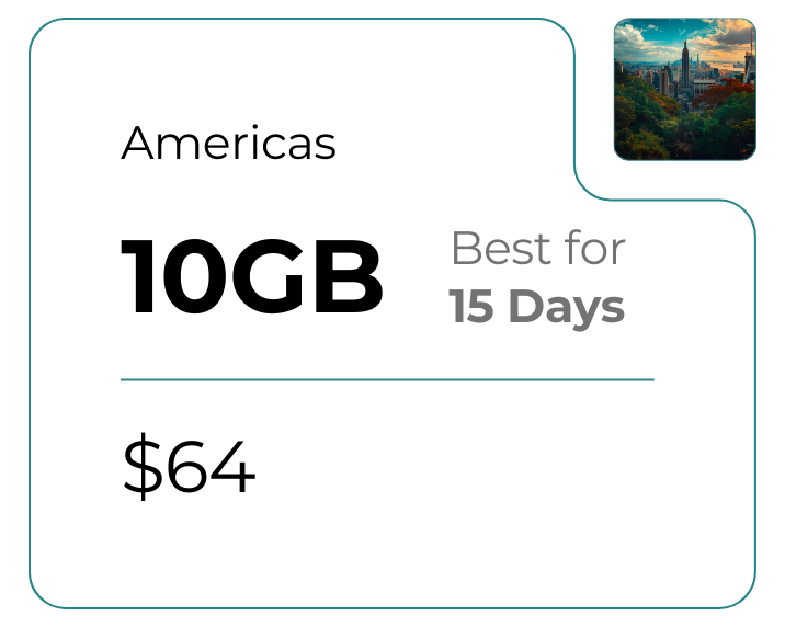 Оставайтесь на связи в 18 странах Америки с помощью одной eSIM.